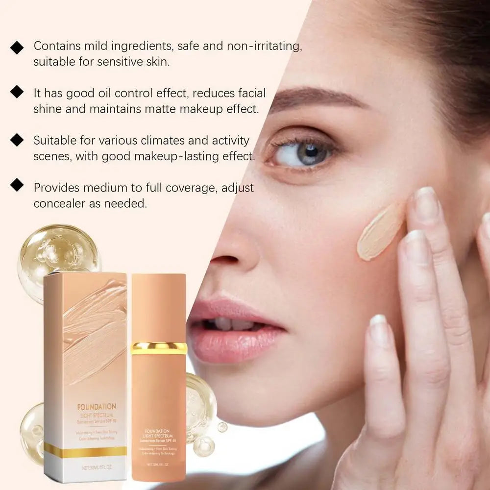 30ml Liquid Foundation SPF50 UVA/UVB Moisturizing Sunscreen Oil-Control Matte BB Cream Full Coverage Matte Base face Concealer